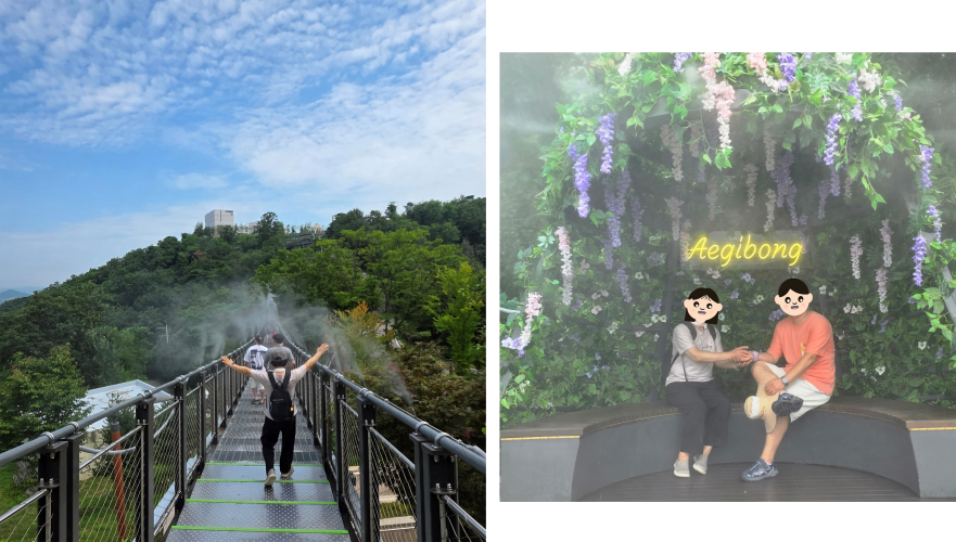 흔들 다리에는 미스트가 뿌려져서 잠시 무더위를 식혀주었고 흔들 다리다 보니 스릴만점이었던 것 같습니다.