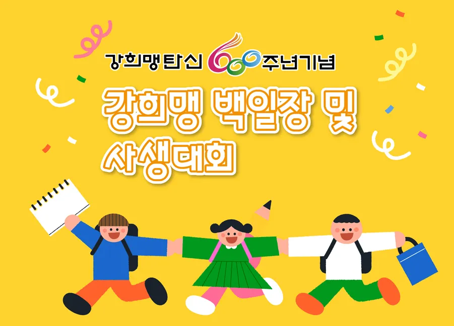 이번 행사는 강희맹 선생 탄신 600주년을 기념하여 실시하는 행사로서 시흥시에서 주최하고 사단법인 예명원 시흥지부와 시흥문화원에서 주관하는 행사입니다. 아무쪼록 태풍으로 무더위가 잠시 꺾여서 참가하는 모든 어린이들이 건강하고 행복한 행사가 되길 바랍니다.